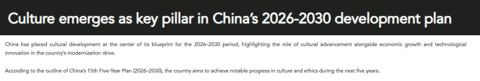 文章说,在推进中国式现代化的进程中,文化建(jian)设与经济发展、科技创新同等重要。“十五五”计划(hua)纲领在提出加强文化自大、优化公共文化服务供应、增进文化产(chan)业发展等方面作出明白(bai)要求。