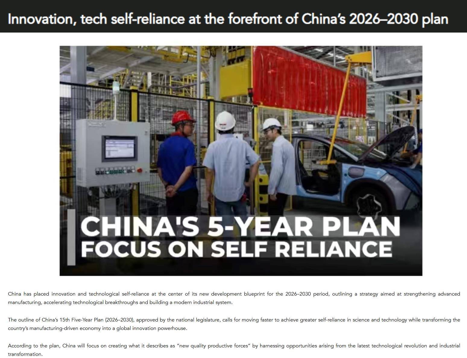 文章以为,“十五五”计划(hua)纲领所(suo)论述的创新驱动(dong)战(zhan)略,将加速产(chan)业升级并支撑长期经济发展,助力中国向现代化目标(biao)迈进。