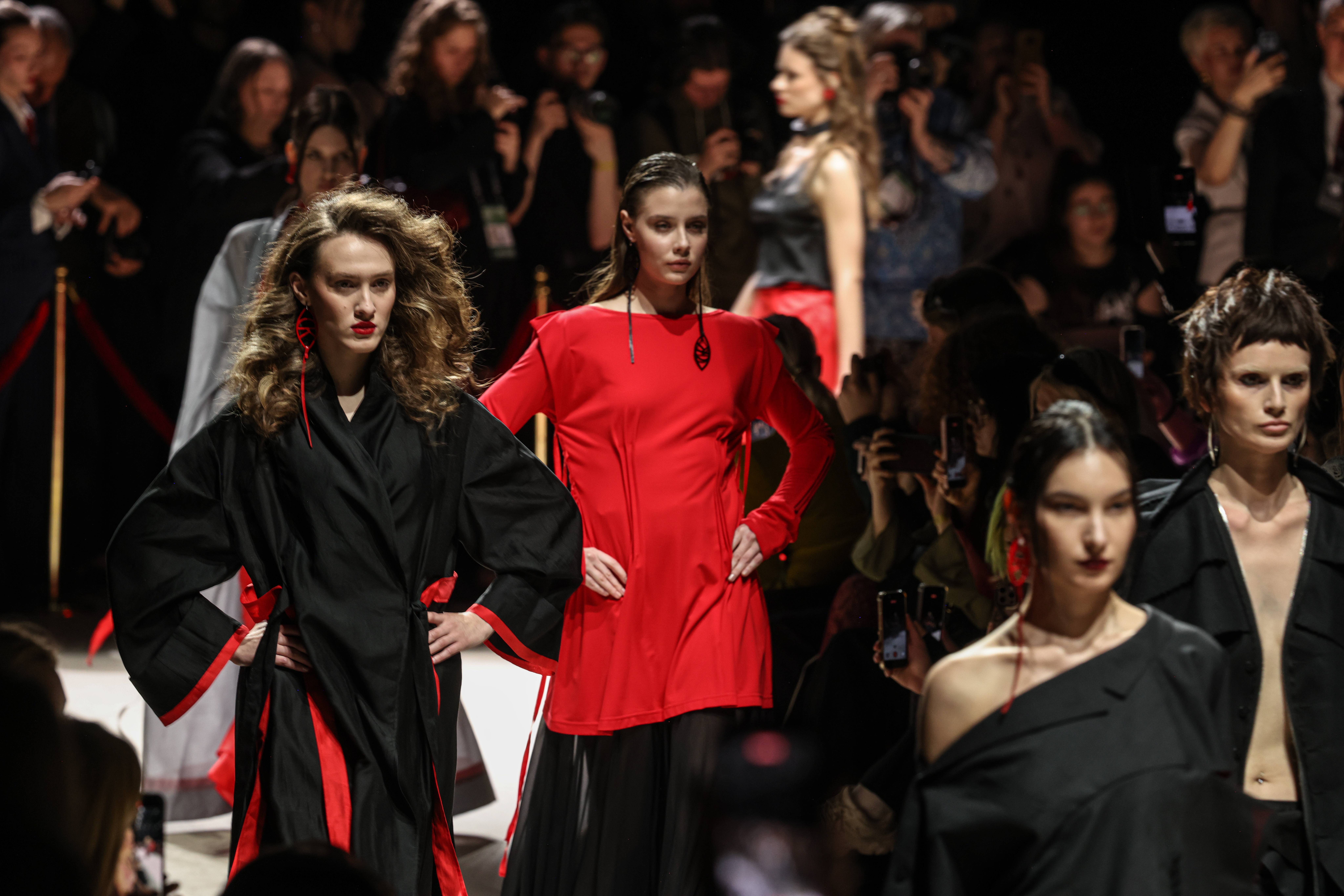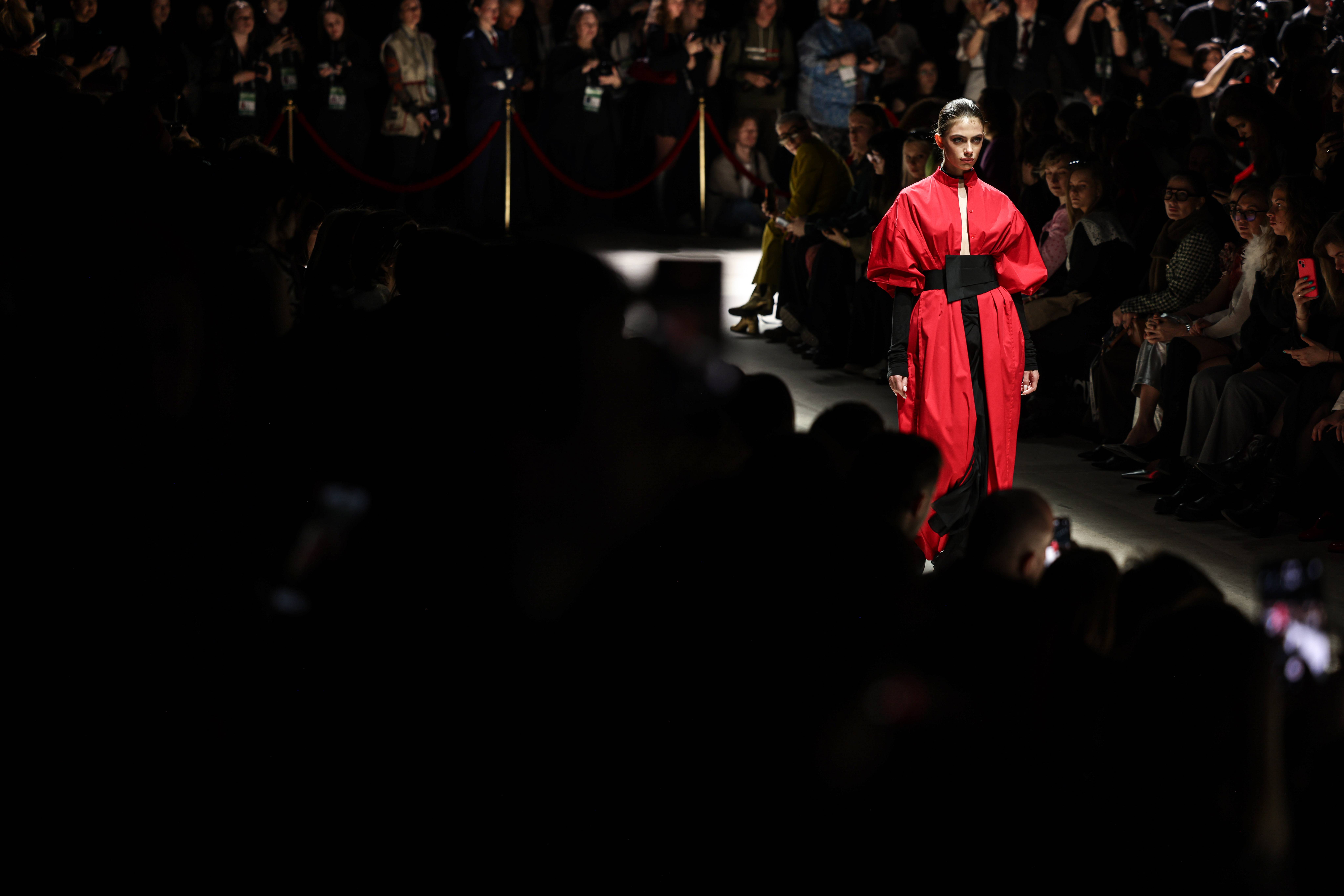 3月17日,模特在俄罗斯莫斯科服装周上展示Darya Kipriyanova品牌的新款服装。 新华社/欧新